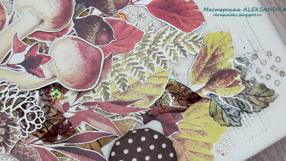 На первом этапе работали с алкогольными чернилами (работала с ними впервые), у меня сложился осенний тежик: