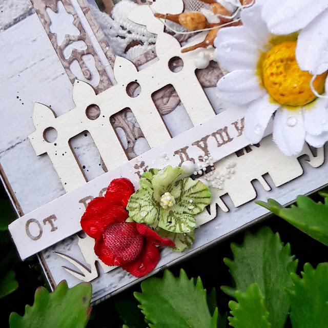 Обязательный элемент: чипборд + цветы.